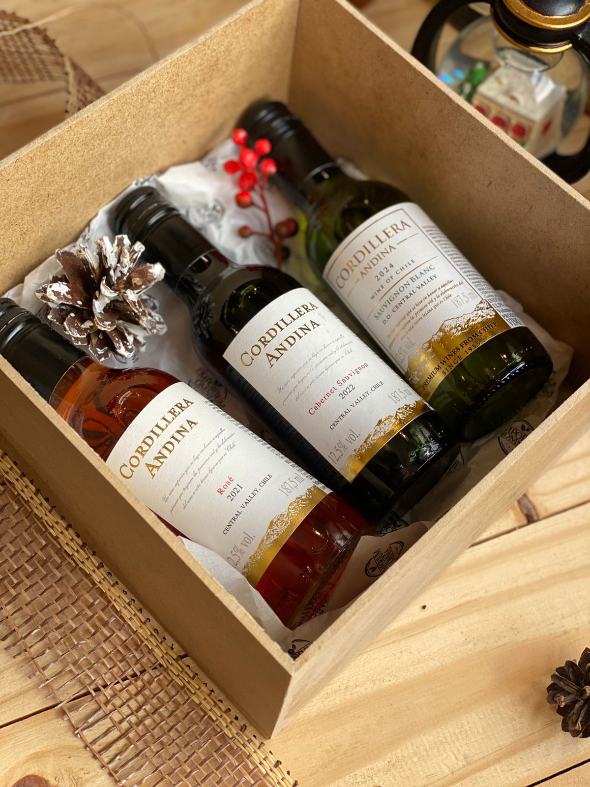 A Box Experience traz uma seleção exclusiva com três rótulos 375 ml da renomada linha Cordilheira Andina, ideal para degustar diferentes estilos e descobrir novas sensações a cada taça.