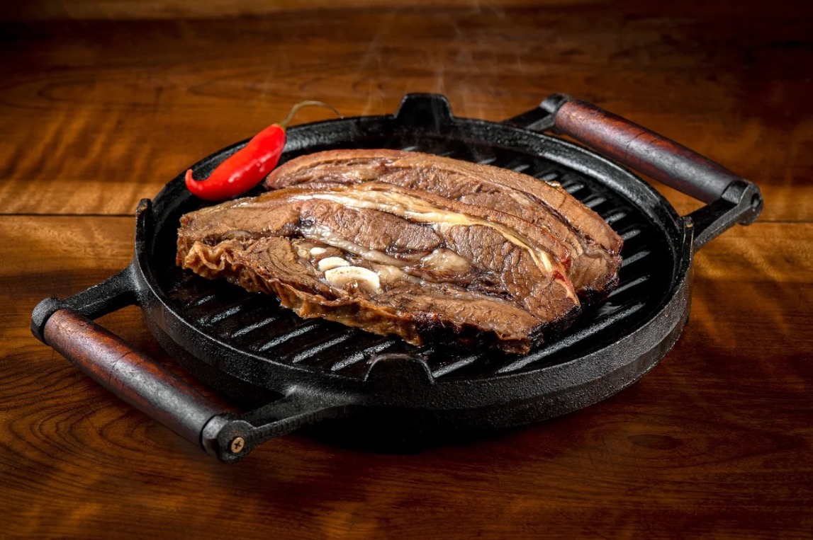 Depois de pronta, é cuidadosamente fatiada, preservando sua textura e facilitando o preparo. Embalada a vácuo em porções de 250g, mantém sua integridade até o momento de servir. Basta aquecer por cerca de 20 minutos para reviver a experiência de uma costela feita no fogo de chão.